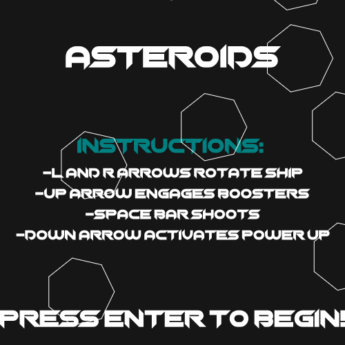 Description: Asteroids port with a few extra features like power ups and a space ship that shoots homing missiles at you.